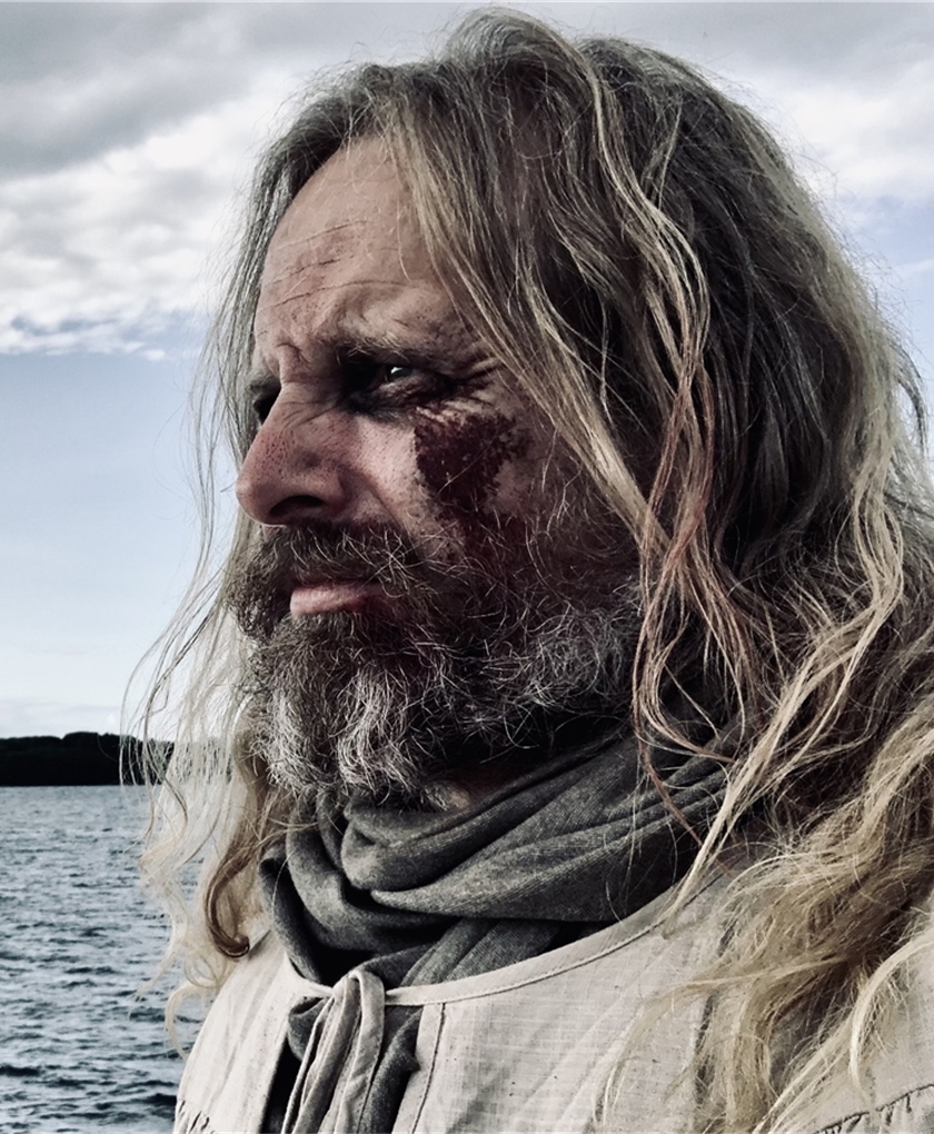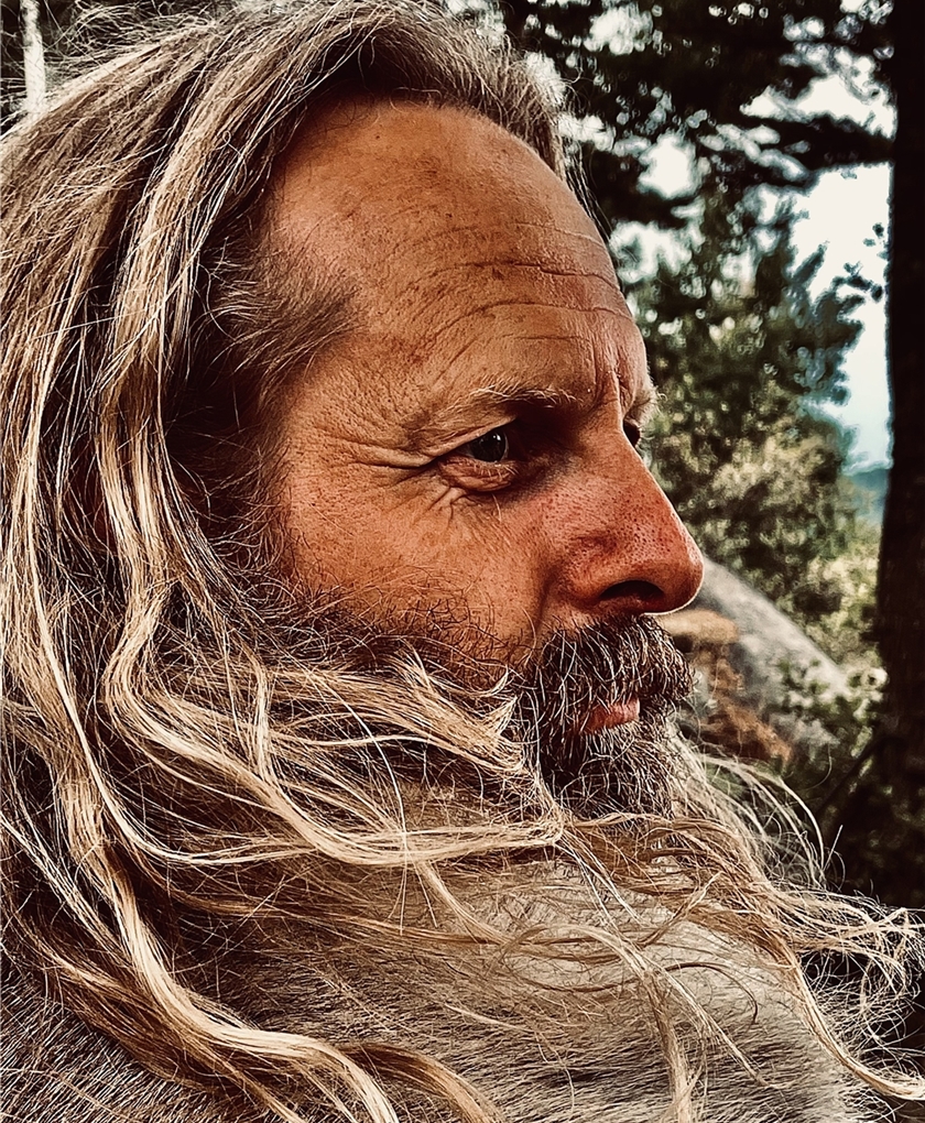 | Mann med blondt langt hår og for tiden med skjegg. (Viking-look). |